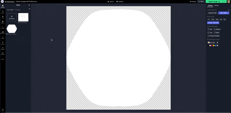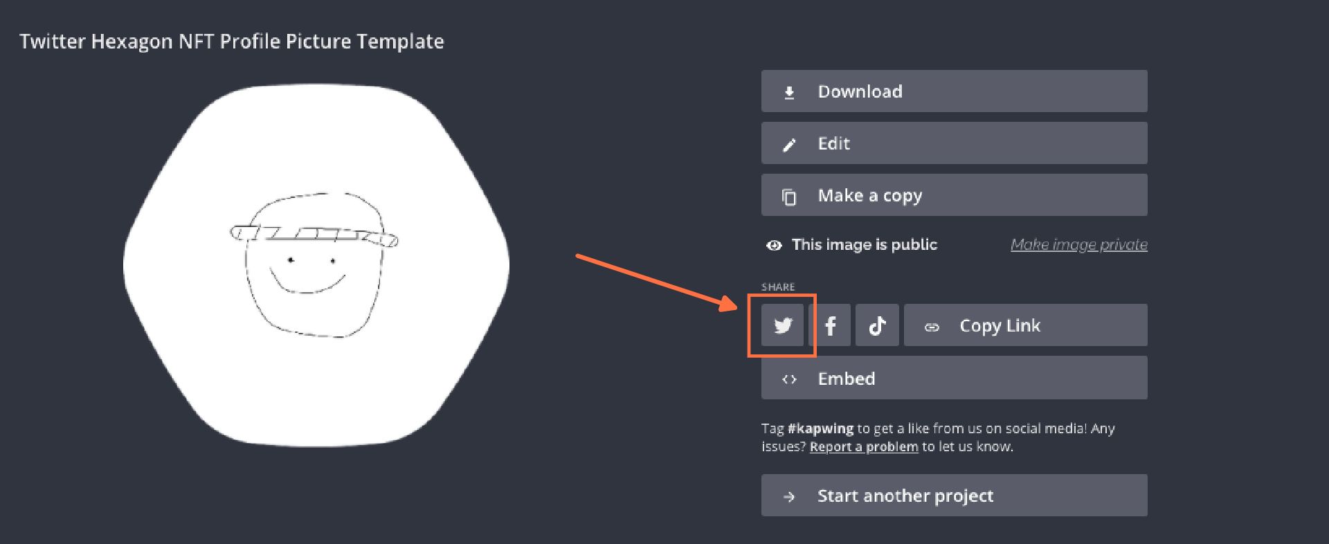 Click "Export Image" in the top right-hand corner and download your image. Now you have a hexagon-shaped picture you can use as your Twitter pfp! You can set your Twitter profile picture on any device (iOS, Android, desktops). If you don't want to set this as your profile picture, you can also share it directly from Kapwing to your Twitter feed.