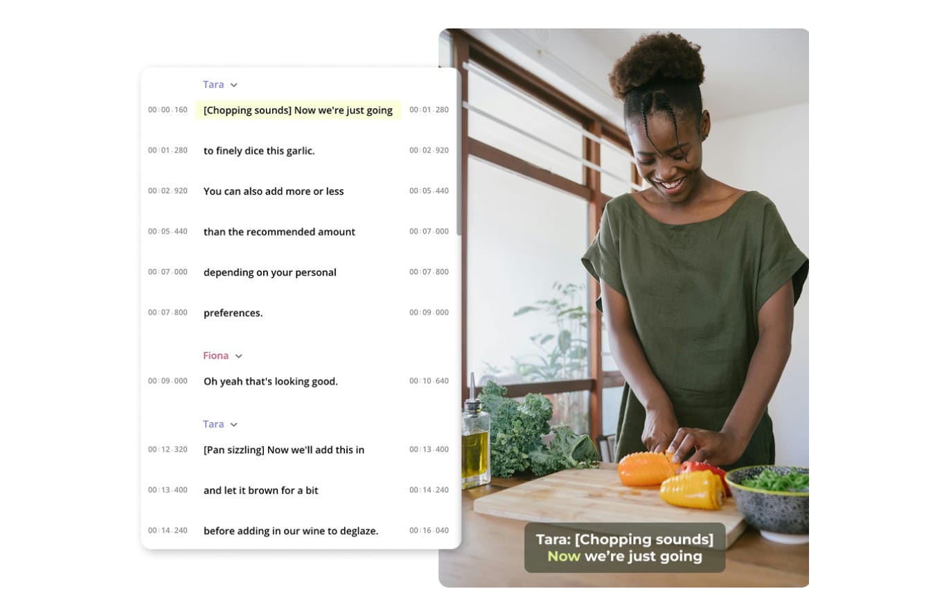 Once generated, your video captions will automatically appear synced with your audio. They will also feature speaker diarization, meaning captions from each individual speaker will be grouped together.