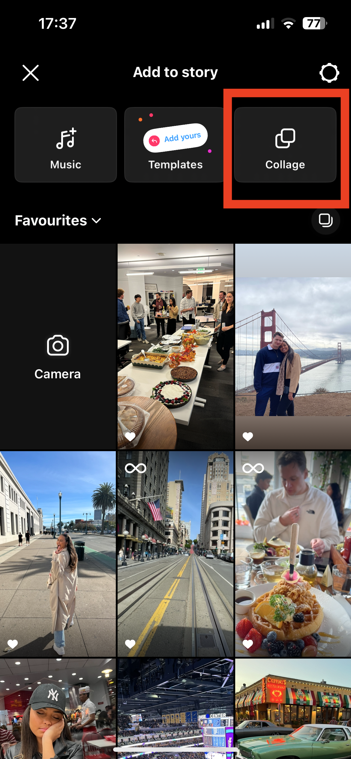 Below the "Collage" option, you'll see your media. Your "favorite" media will show up first.
