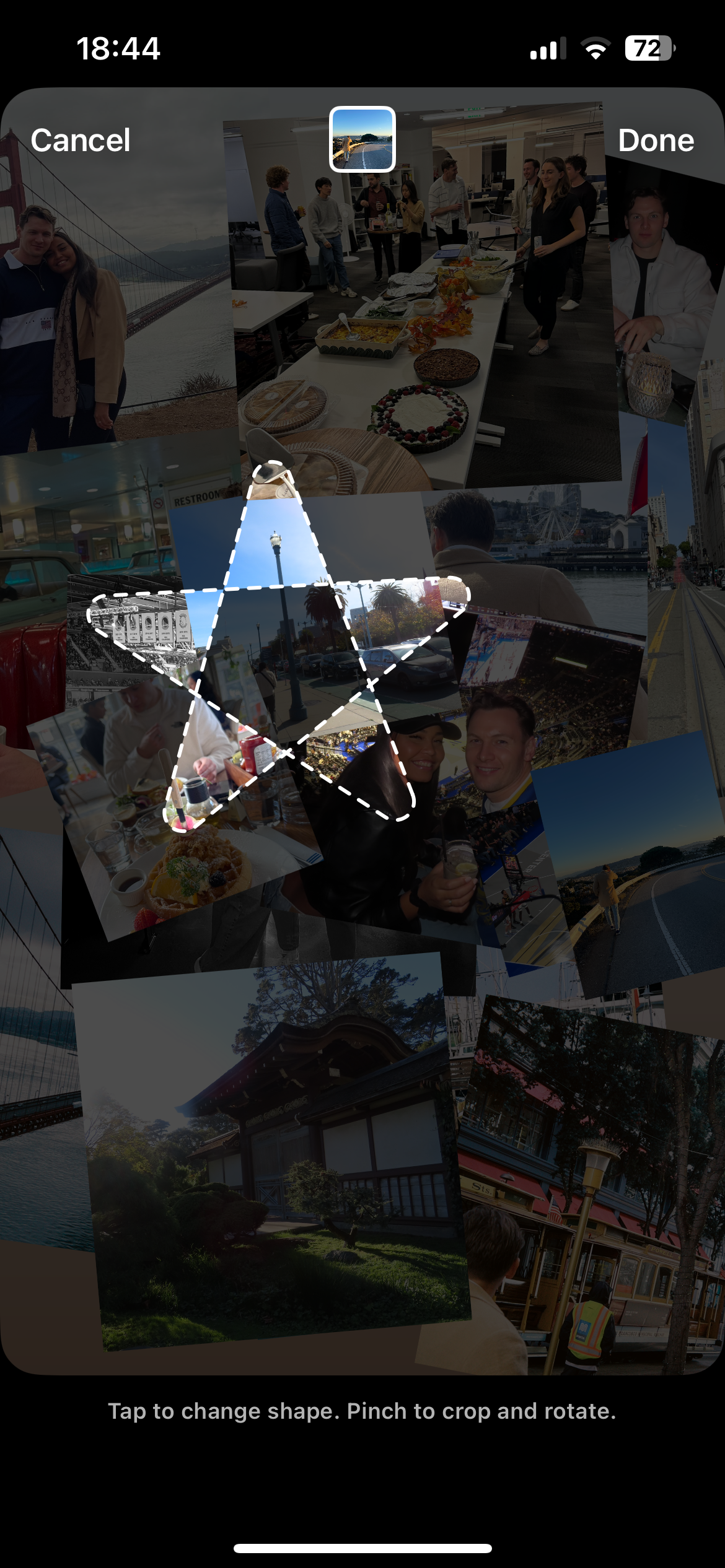 Tap on an image to change the shape of that individual image; there is a star, heart, square, and rectangle to choose from. You can also pinch to crop and rotate images.
