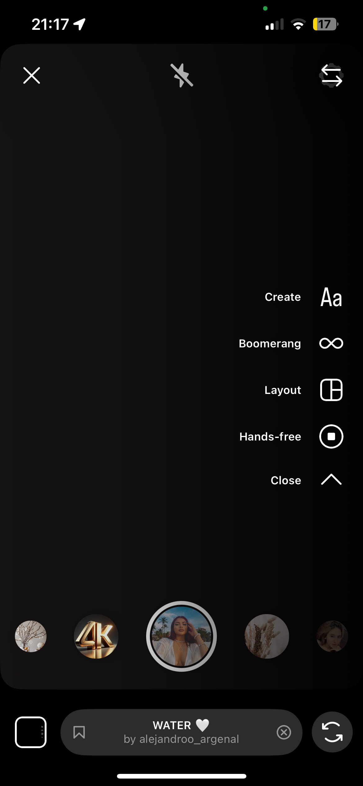 Example of an Instagram layout which you can access by swiping to the right from the Instagram homepage