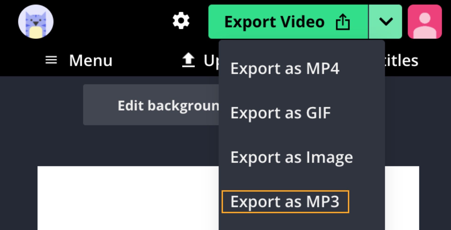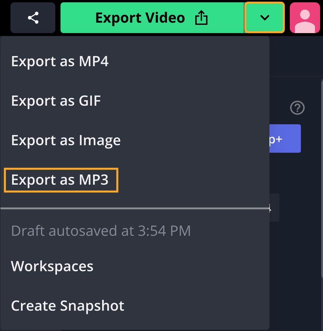 Tap the arrow next to Export Video, then tap Export as MP3 to begin converting the file. When the audio has finished processing, tap Download to save the sound to your files.