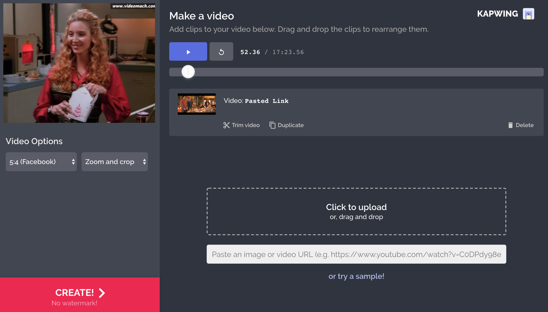 - Get started by heading to Kapwing's Video Editor tool. All Kapwing tools are free and don't require sign-in or downloads!