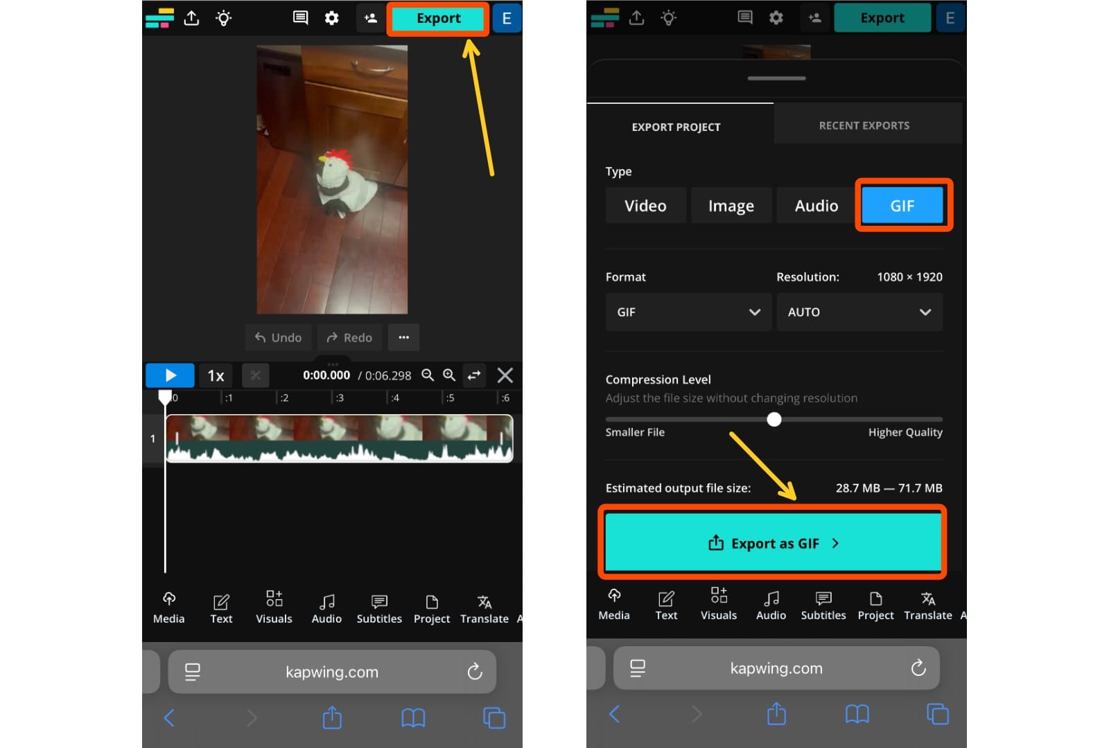 When you’re ready to save the GIF to your device, tap the Export button at the top of the screen. This will open the export menu.