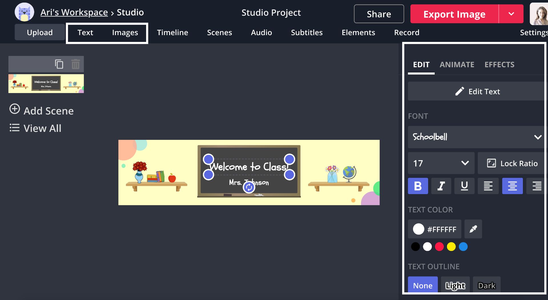 Review your Google Classroom banner and add any final touches. When you're finished, click export image at the top right corner of the Studio. Remove the watermark by creating a free Kapwing account using your Facebook or Google login credentials.