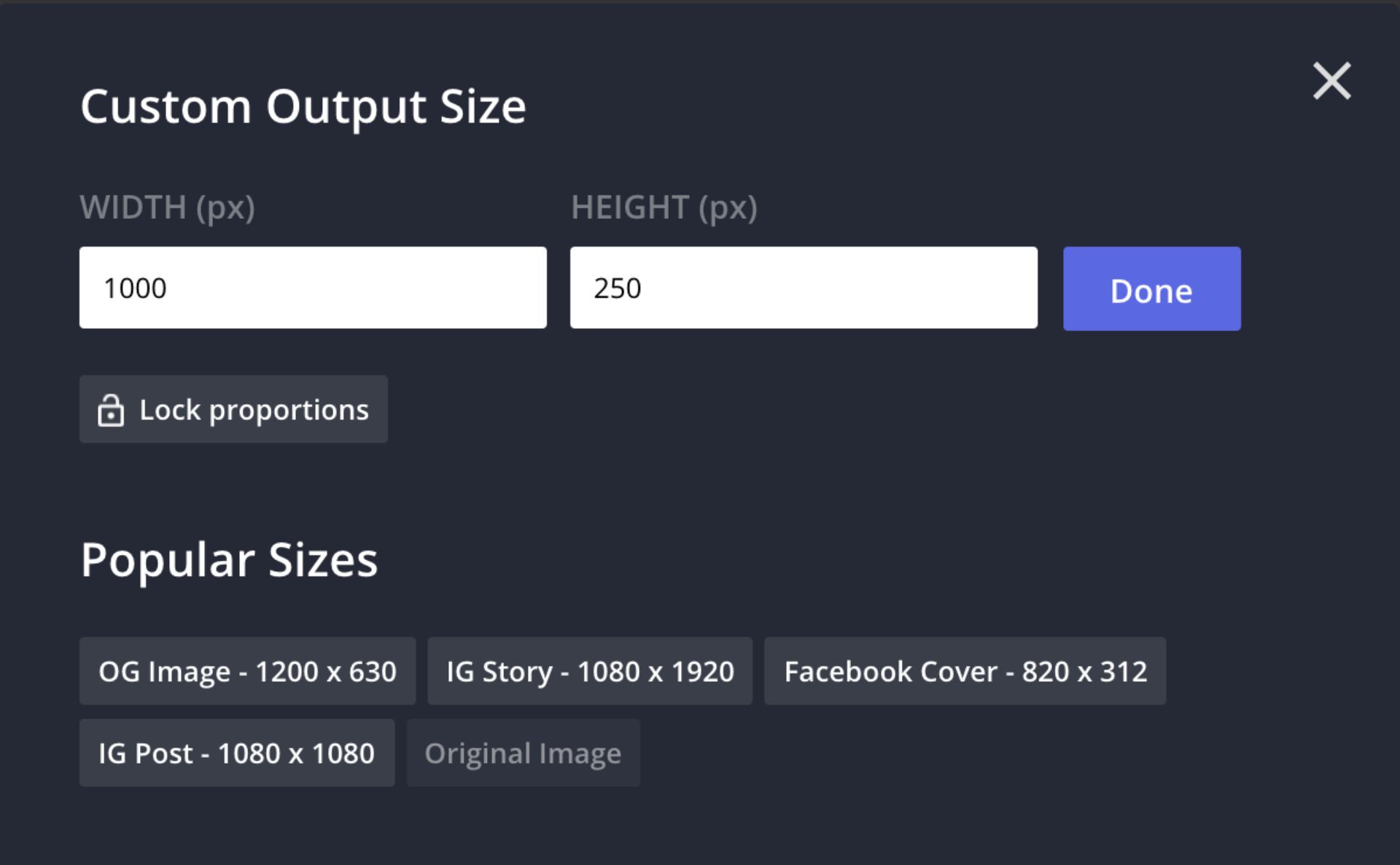 Let's make sure the background is the right size for Google classroom. On the right side of the Studio, click custom under output size and change the width and height to 1000 x 250 pixels. You can lock the proportions to maintain the aspect ratio.
