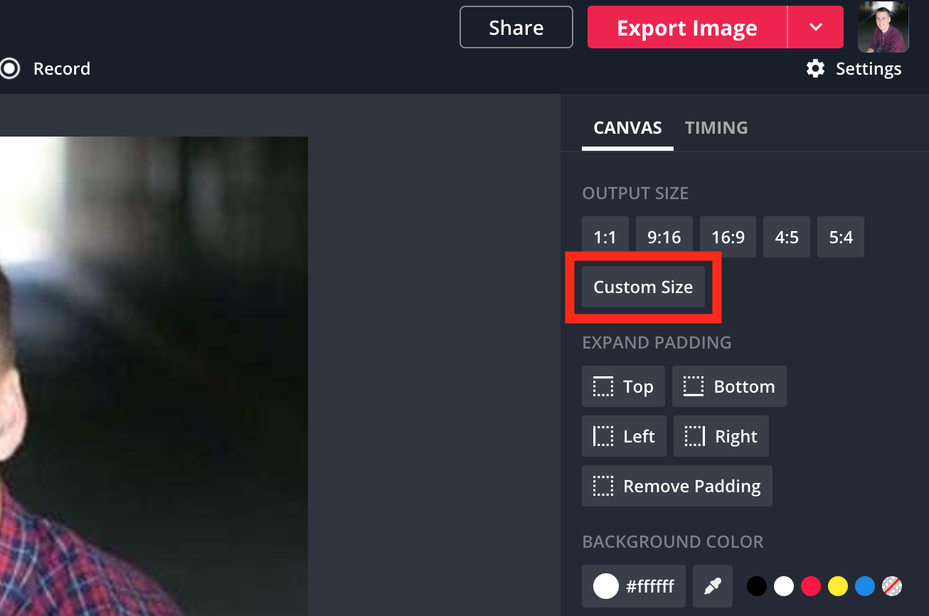 In order to change the dimensions, look to the right of the screen and find the Output Size section. Here, you will see a group of presets and the ability to choose a Custom Size.