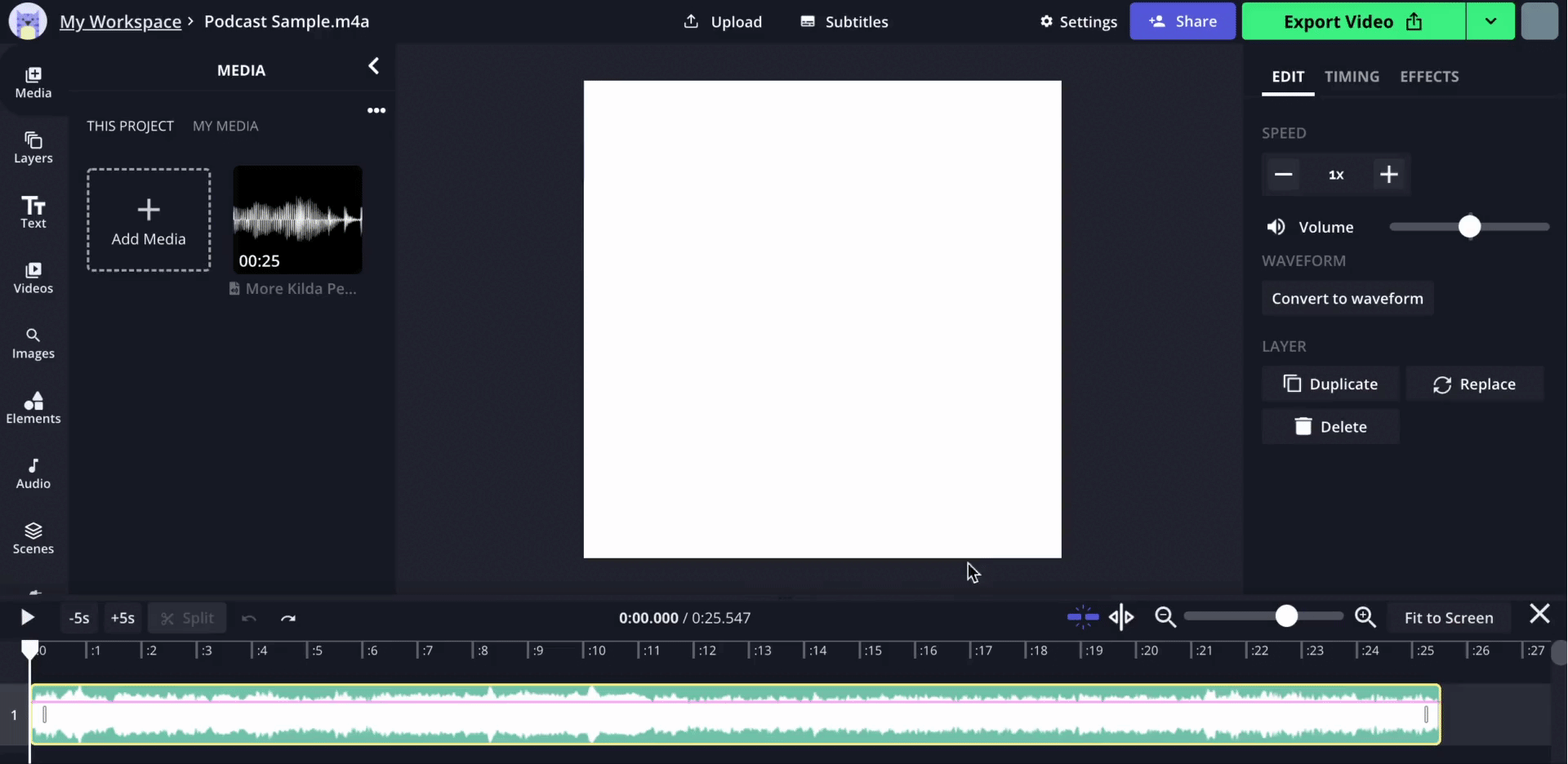Forget any doubts you have when editing podcasts. Traditional audio podcast editors can be confusing — daunting, really. No podcast editing experience? No problem. This podcast editor was created to serve anyone with a podcast, whether they’re at a beginner, intermediate, or expert editing level. Oftentimes, creating podcasts requires an entire team, but this online feature makes it easy and efficient to collaborate with others and use tools that otherwise would take too much time to learn how to use.