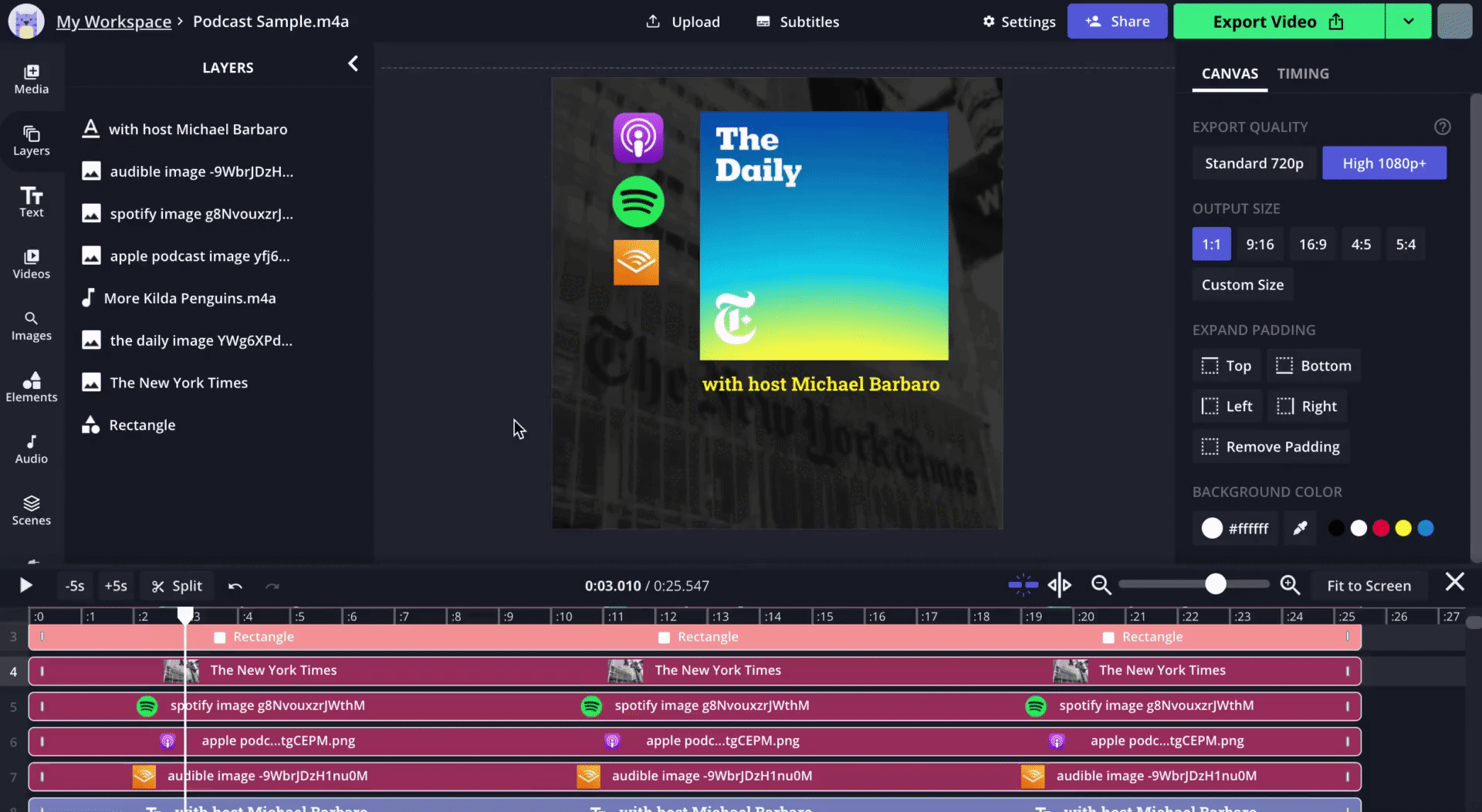 With Kapwing’s online podcast editor, you have full access to AI-powered tools that do all the tedious work for you. Remove background noise from your audio podcast in one click and automatically cut out all the awkward pauses and empty gaps. It’s that easy.