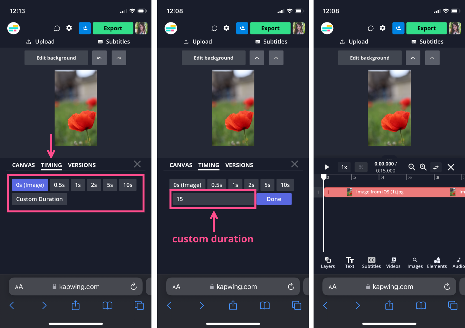 Select Edit background and then Timing. From here, you can choose the duration you'd like for your video.