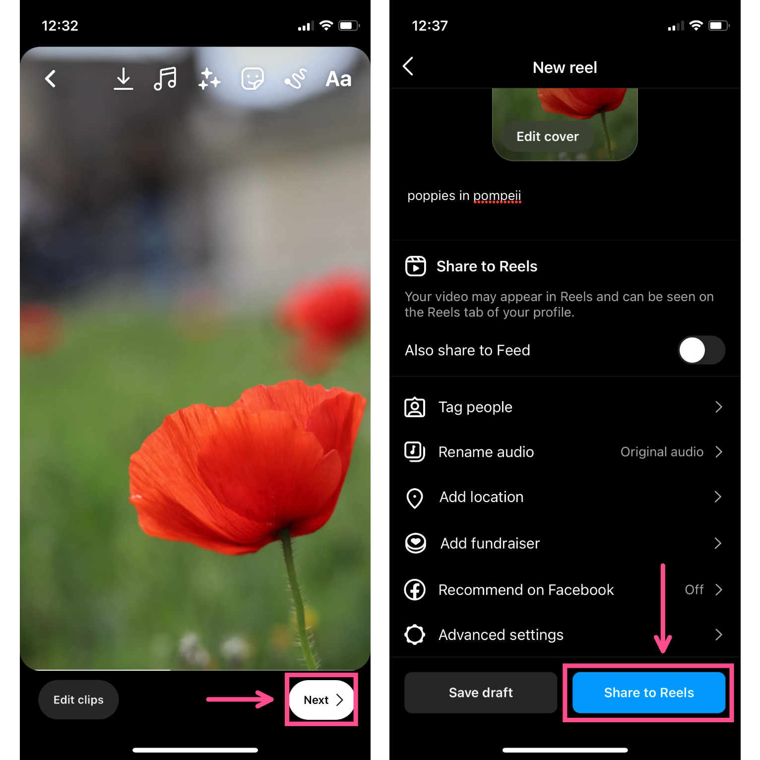 Finally, click Share to post your Reel and share your photo with all of your friends and followers.