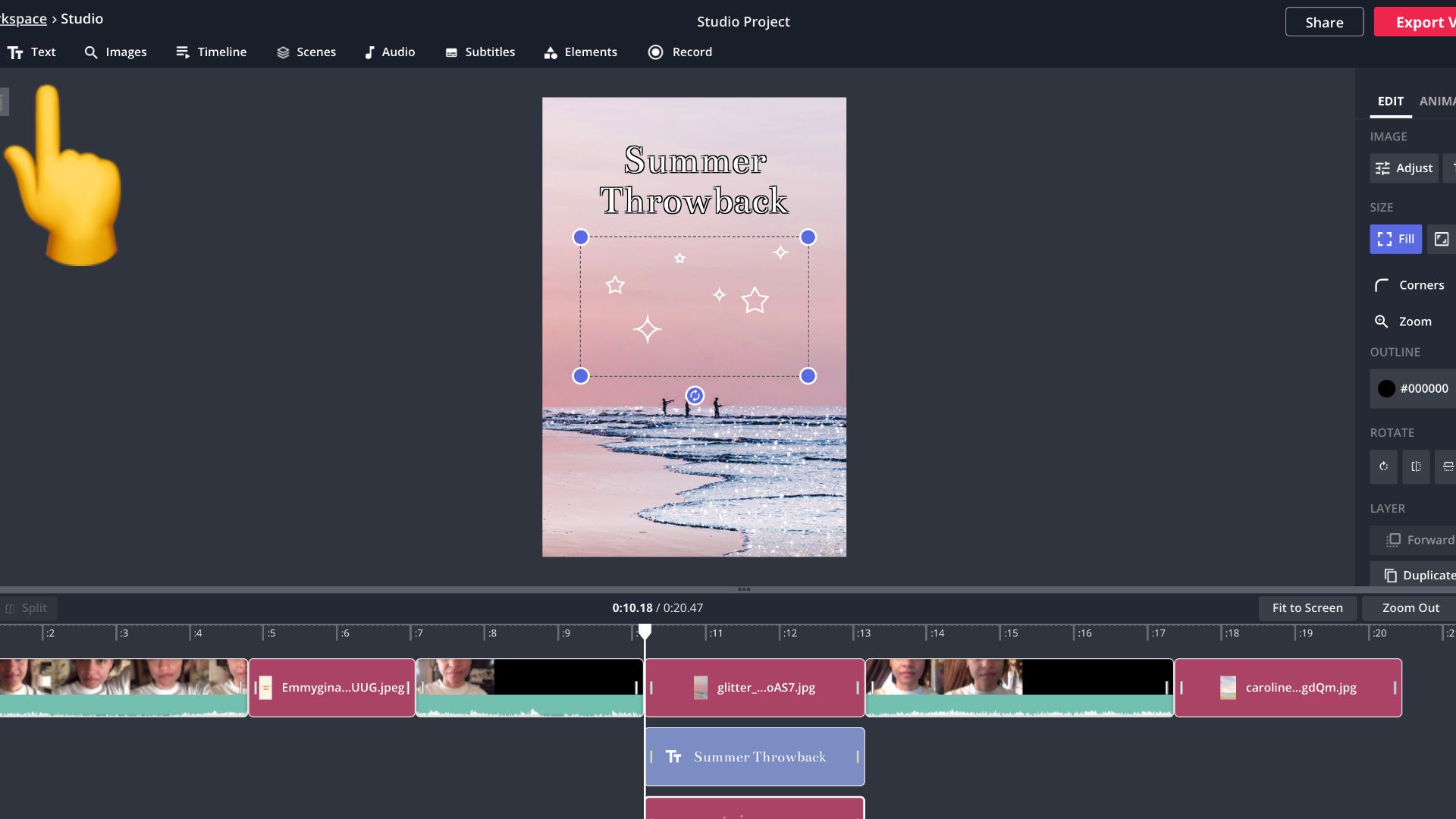 Now all of your images and video clips should be arranged in the order you want and sized correctly. You can leave it here or you can add transitions between the clips or add some text layers.