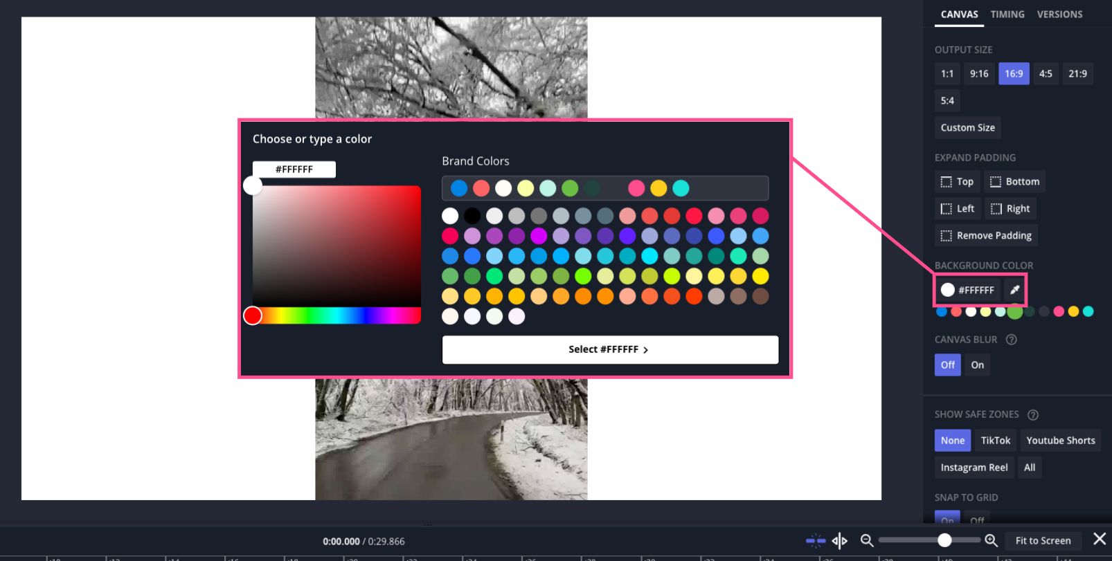 If you don’t want the video background to be white, you can select Edit Background to change the colors to one that you like more. Choose from the existing color palette or add your own custom color using the gradient slider or by entering a HEX code.