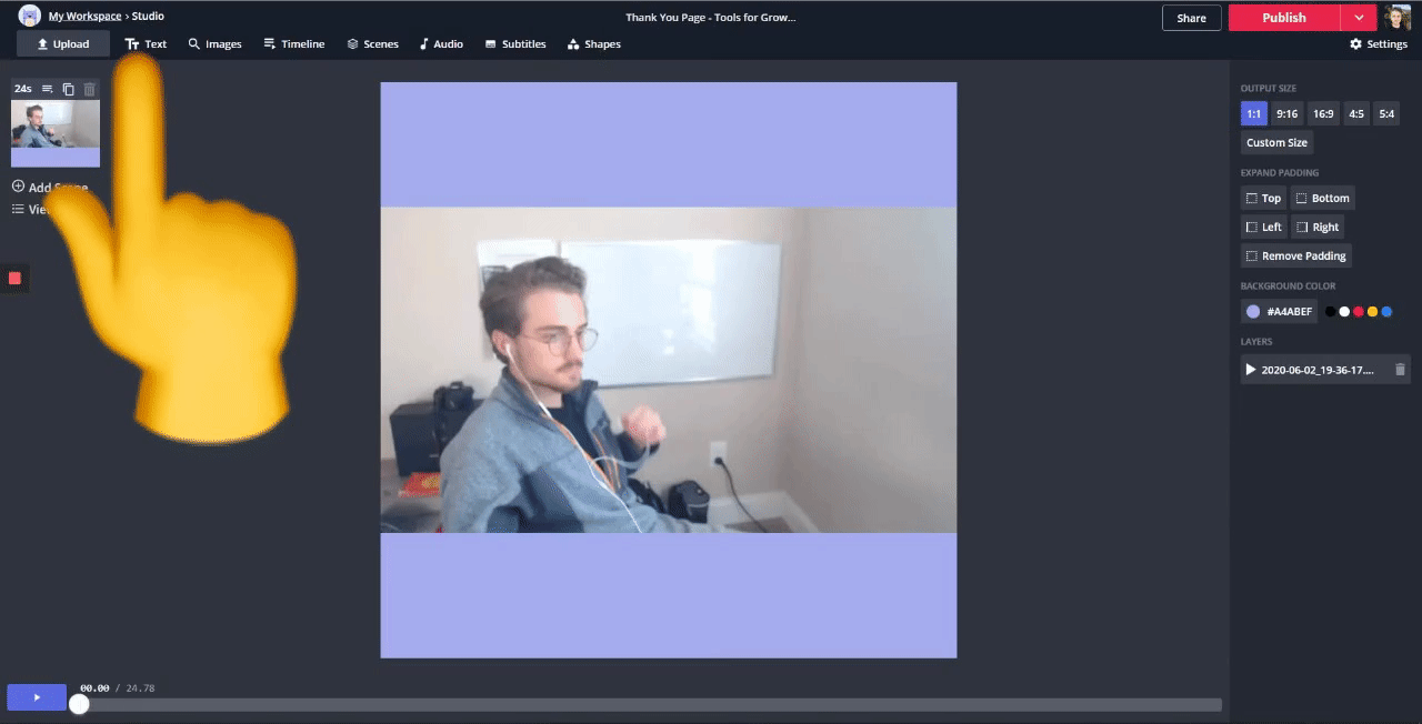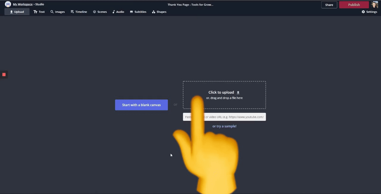 Now, open the Kapwing Studio and upload the video you just created.