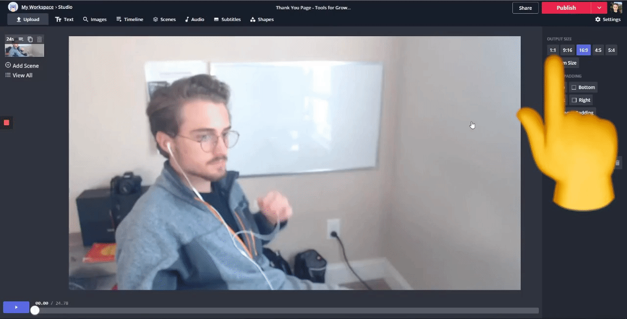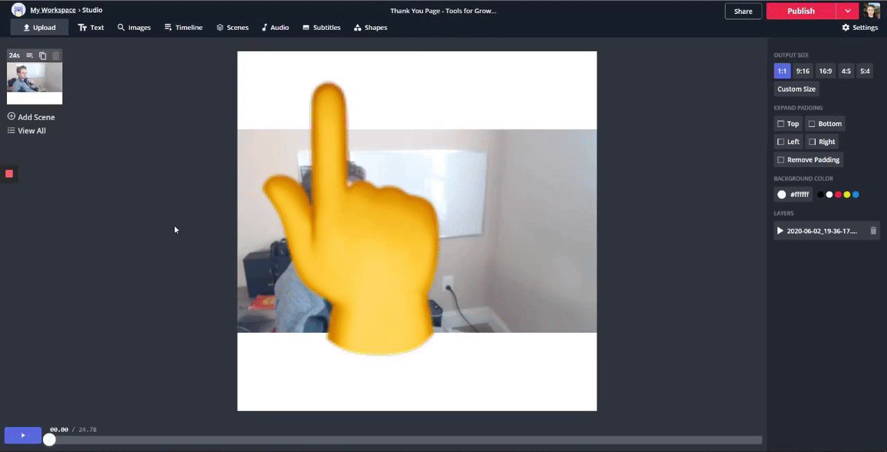 When you’re done, click ‘Publish’ in the top right and Kapwing will process the video. Then, you can download the video or share it to your favorite social platform!