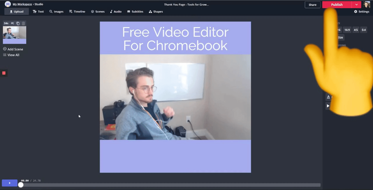 You have two options. Use the recording as is or sign up for expensive software that’ll just slow you down. Actually, there’s a third option I forgot to mention. Use Kapwing, which is a web-based tool and one of the best video editors for Chromebook. With Kapwing, you can make a video exactly how you want it. Interested? Keep reading and I’ll show you how:
