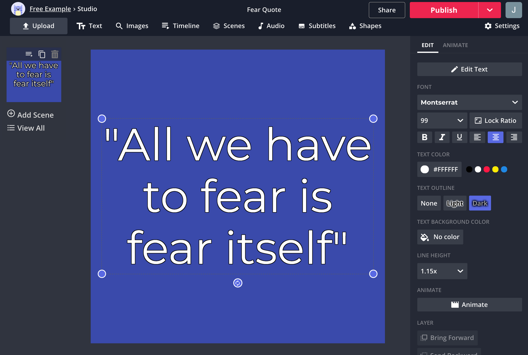 If you don’t have Premiere Pro or After Effects, you can animate text easily in your web browser by using an online video or GIF editor. Online video editors like Kapwing automatically makes any text layer you want to be animate, giving you full power to choose any text font available or upload your own custom font. No downloads, installations, or payments required to make any content.