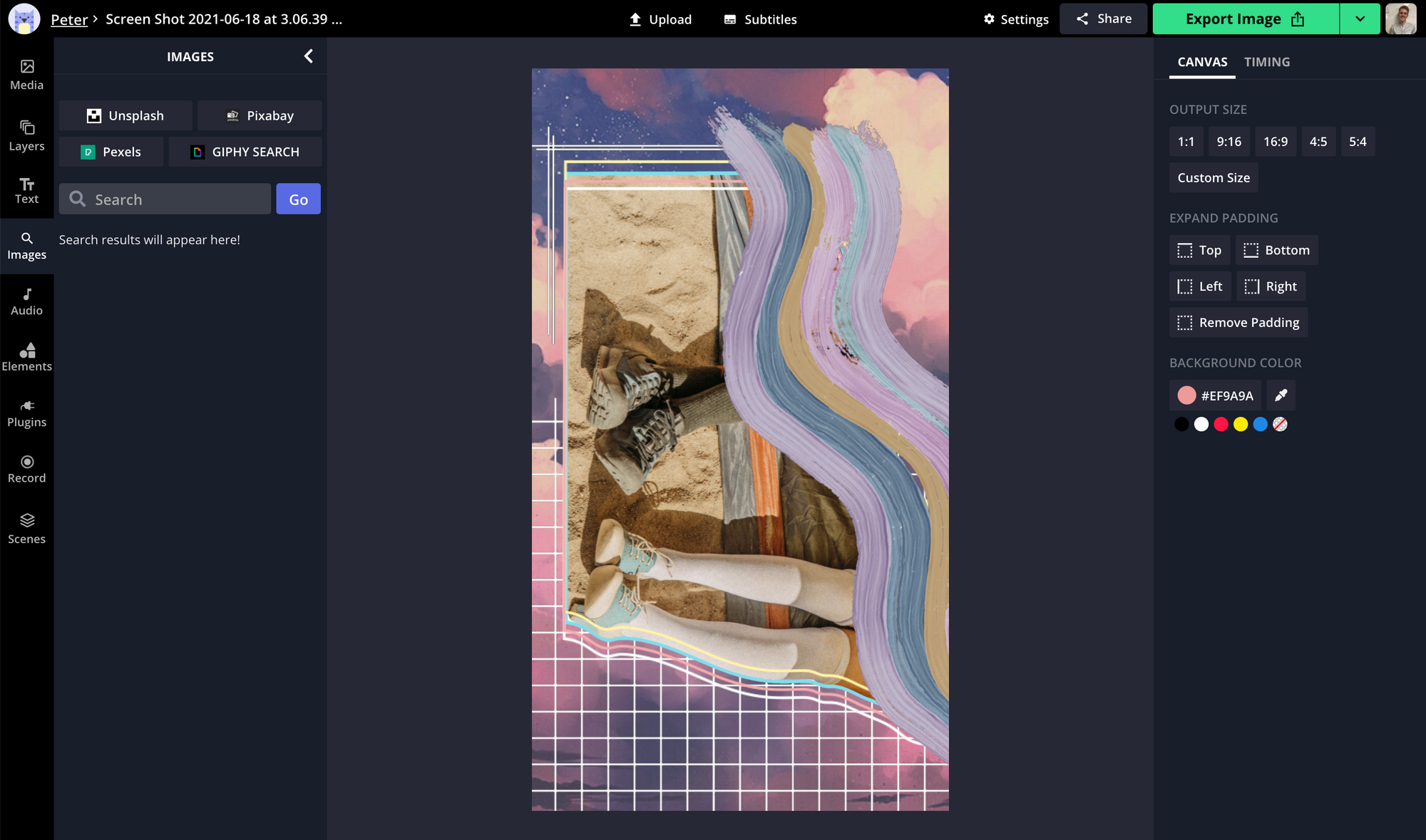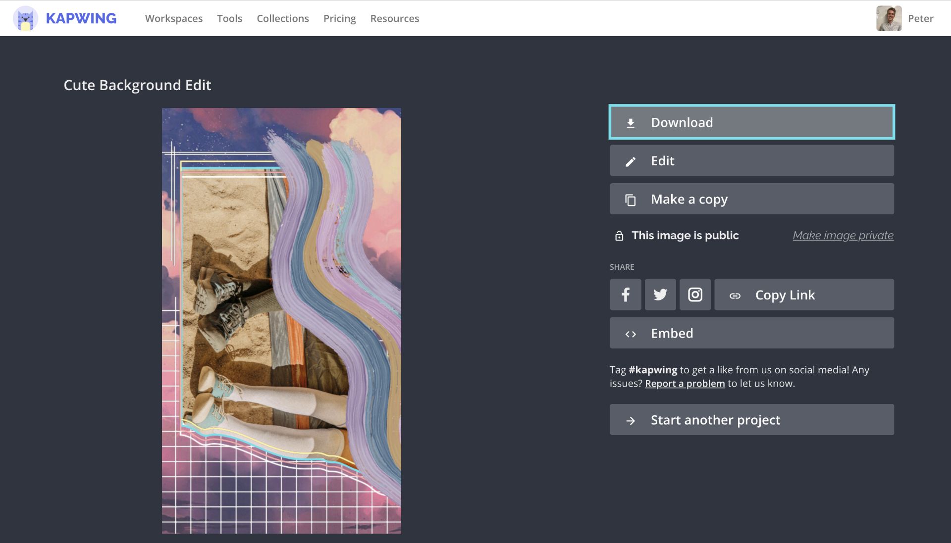 When you're finished, click export image and download to save your aesthetic wallpaper! You can create a free account with Kapwing to remove the watermark and your wallpaper will be stored in the cloud for up to two days.