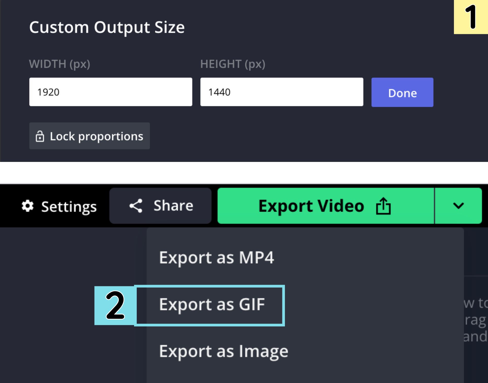 Once you're finished editing, click "Export project" and select "GIF" as the output file to download.