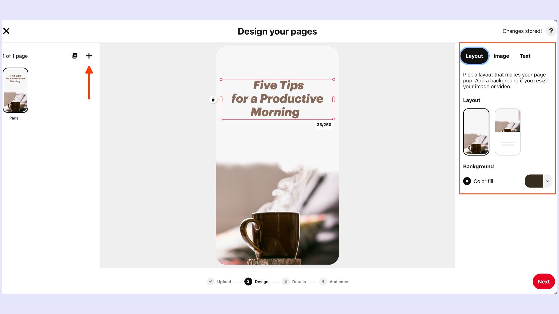 Use the text, shapes, and emoji selectors to create a custom design for the image Pin.