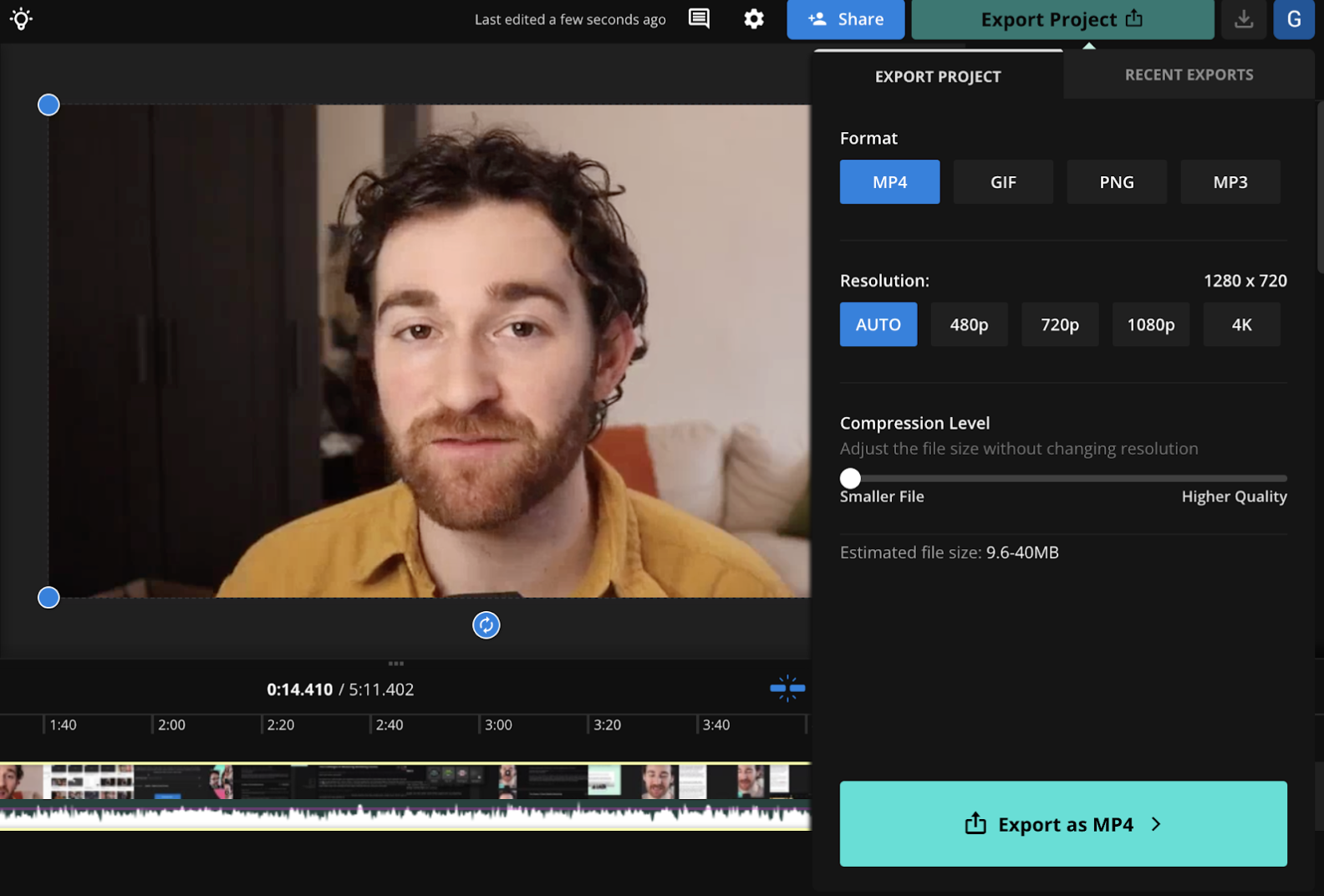 Once you've finished making any necessary edits to your video, now you can click "Export Project" and select the compression level for your video, along with the video format and resolution.