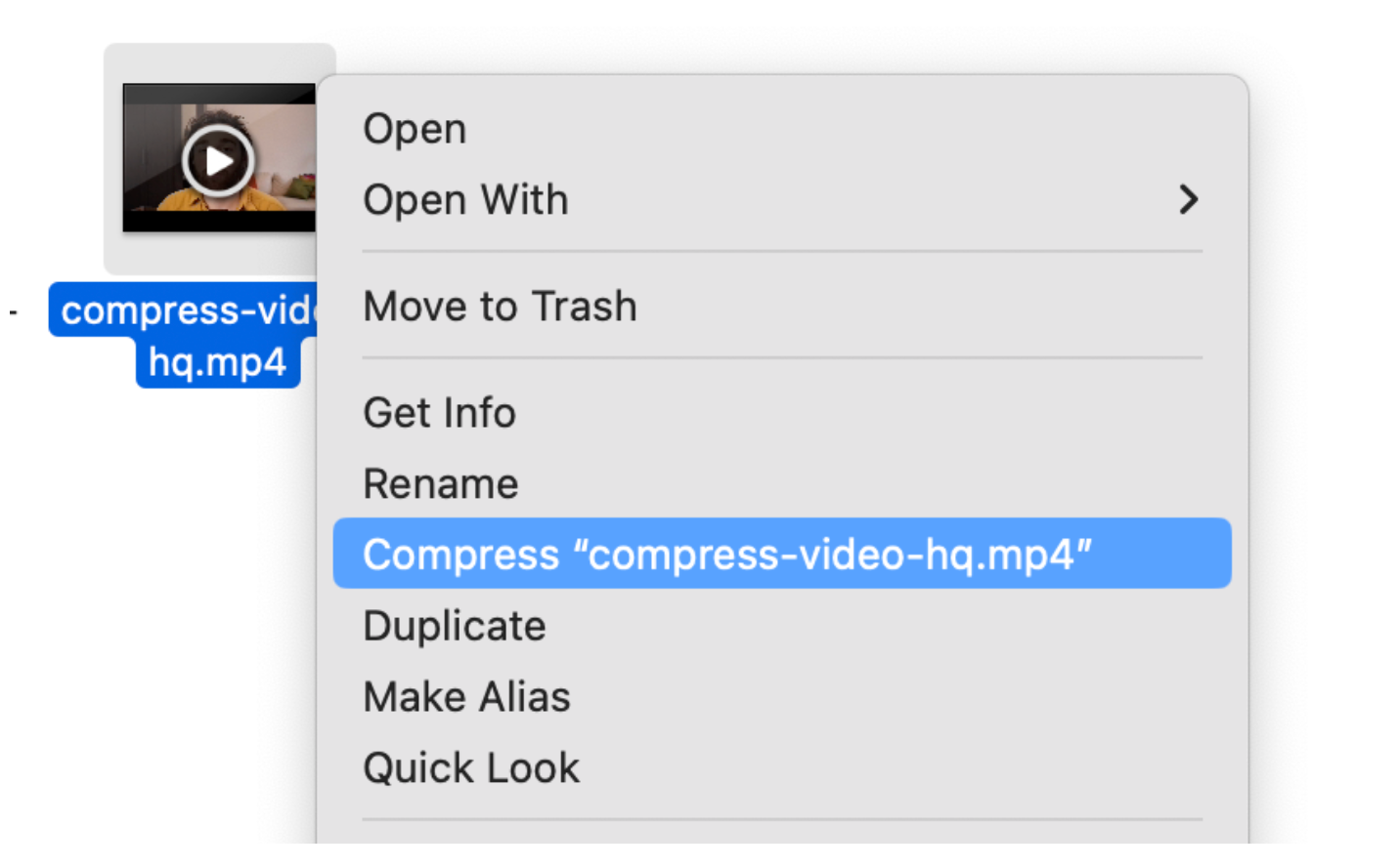 It's simple to compress a video on Mac: just right-click on the video and select "Compress [file name]."
