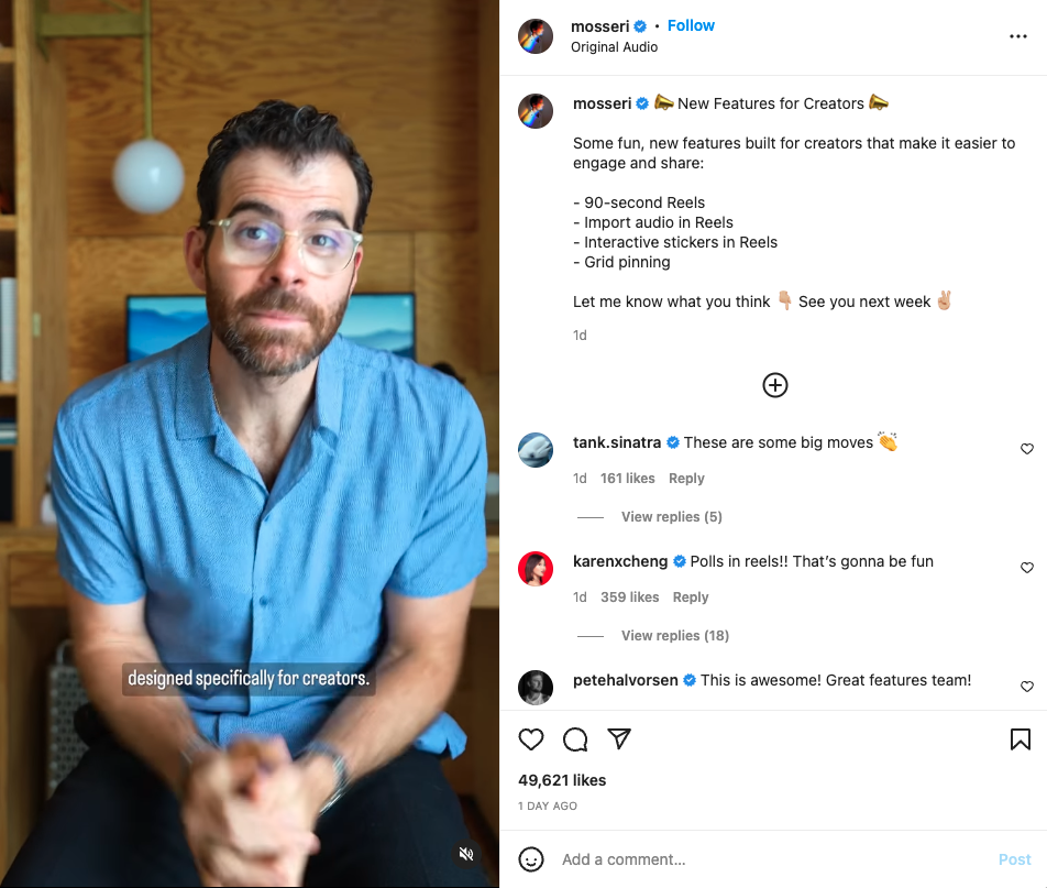 The Head of Instagram, Adam Mosseri, recently took to the platform to announce the new feature on the platform: grid pinning. This is huge for content creators, brands, and every Instagram user in between as Mosseri reminds everyone "Your profile is your space, so we're looking for more ways to give you control over that experience."