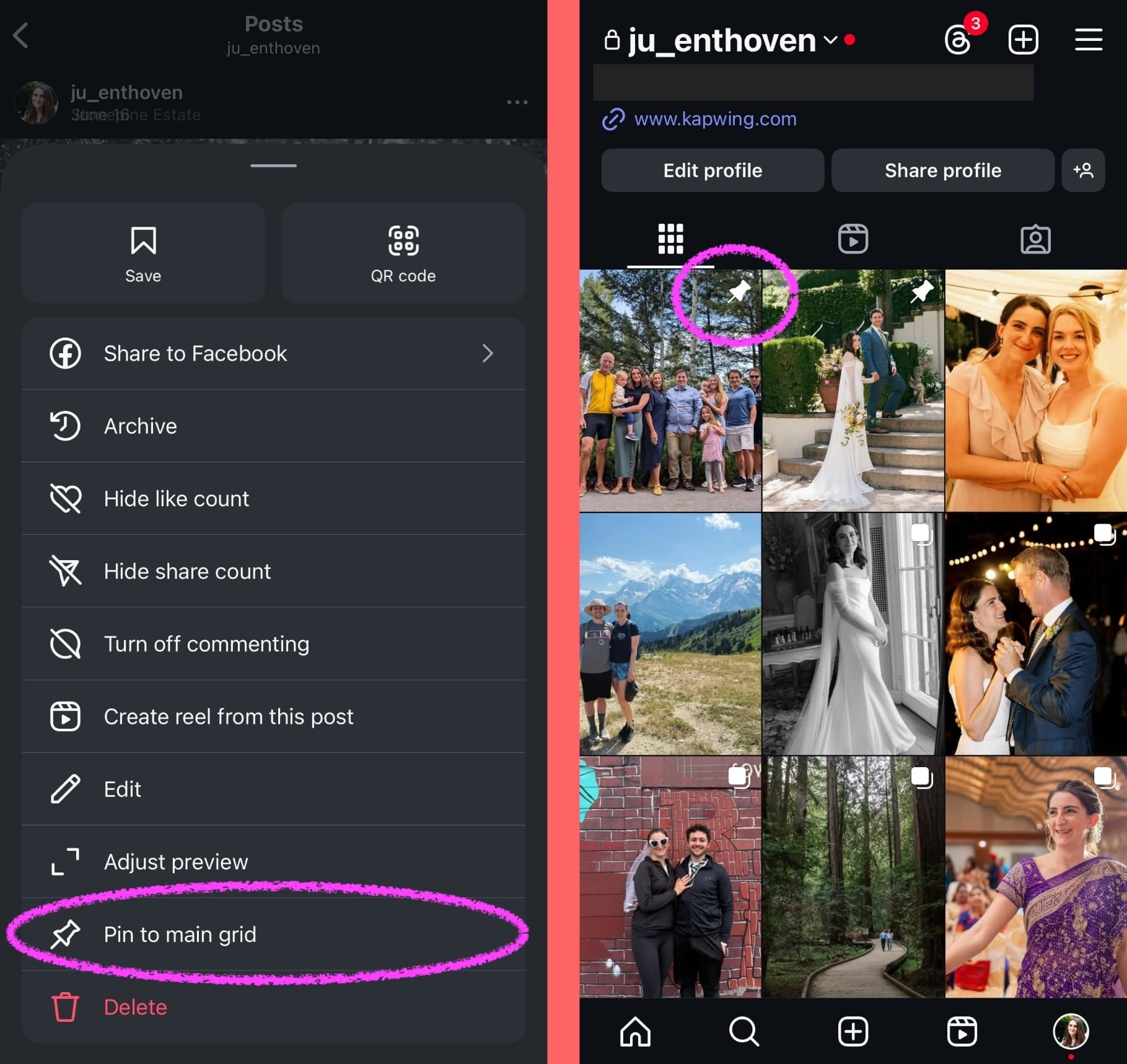 Step 4: Organize and play with your top 3 pinned Instagram posts