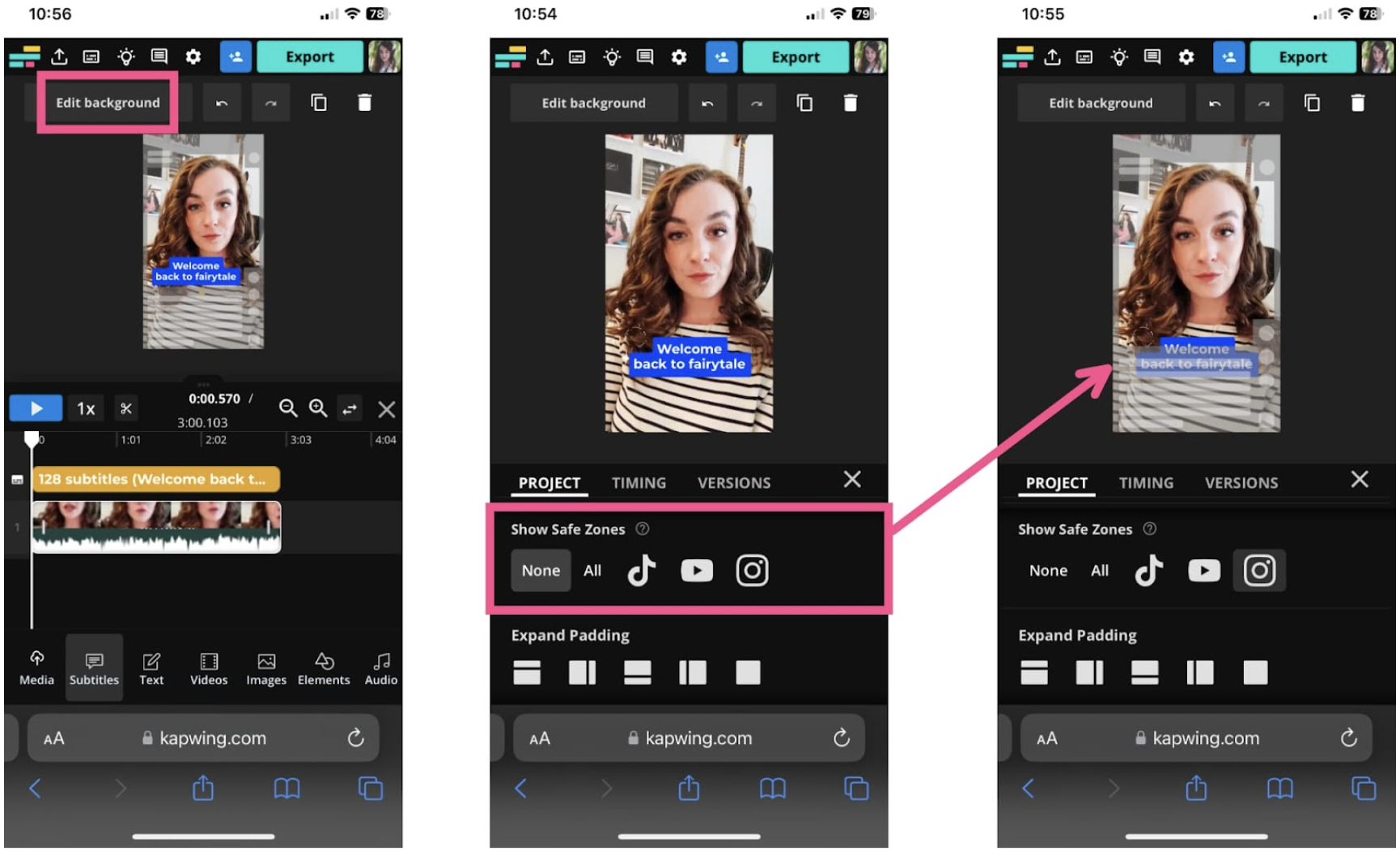 If your subtitles aren’t properly placed, simply drag and resize them so they fit within the “Safe Zone.”