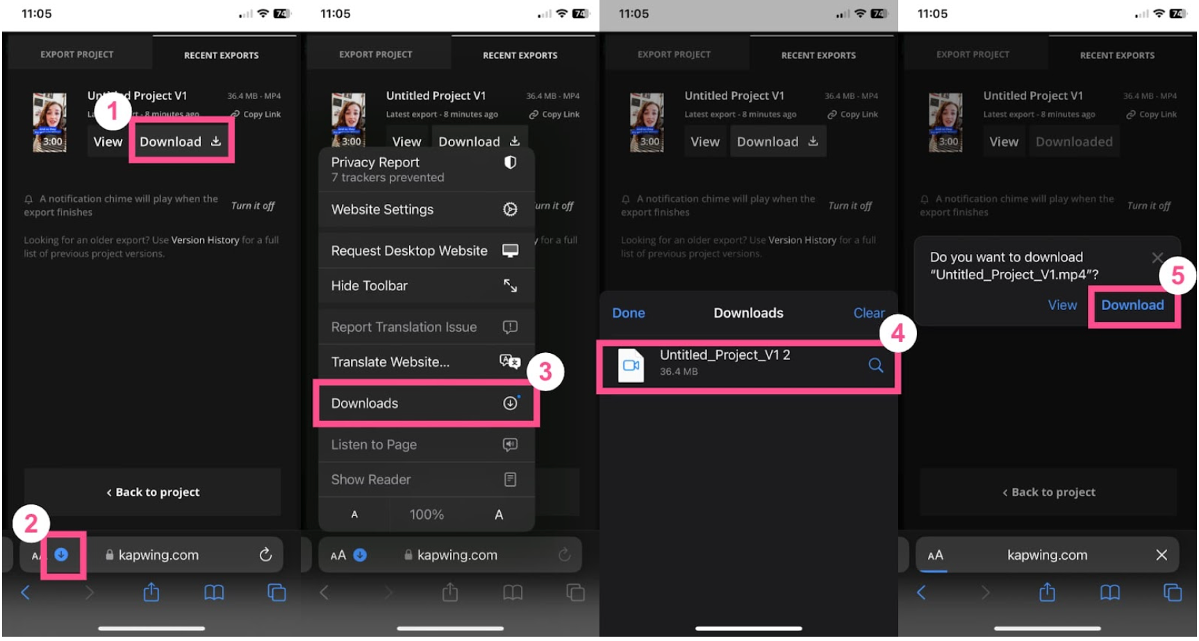 Your video’s ready to go! Tap the export button then download when it’s ready to save the video to your device’s camera roll.