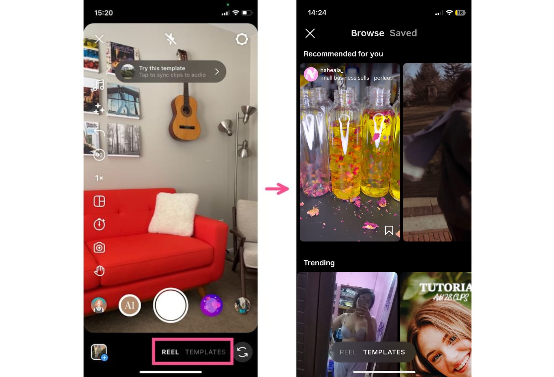 Here, you’ll see two scrollable carousels, one with templates specifically recommended for you, based on your browsing and posting habits, and the other with currently trending templates curated by the Instagram algorithm.