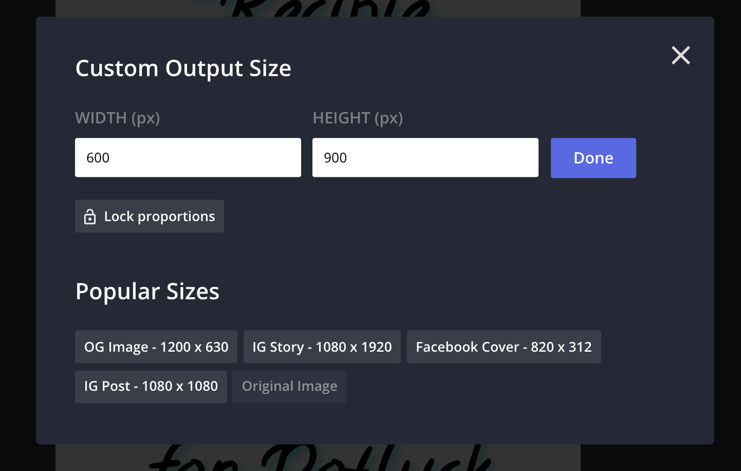 In my example, I’ll be resizing a blog post cover for Pinterest. My graphic was originally sized for landscape, so I’m making two Pin-optimized versions.