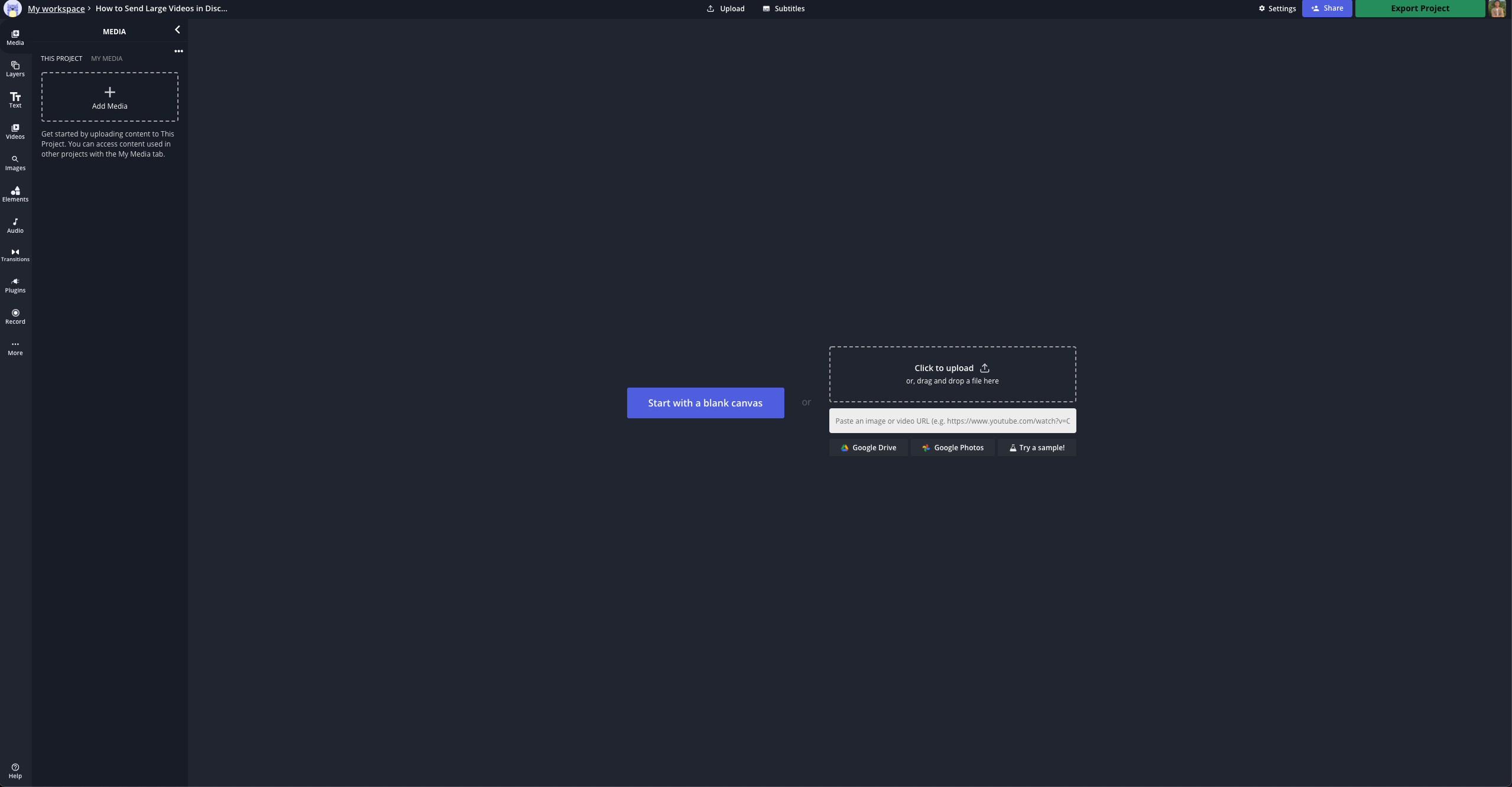 For this example, I'll be using Kapwing to compress video for Discord since I don't have to download anything and it's compatible with any content stored in Google Cloud. If you want, you can also create your own URL link to your video in Kapwing.