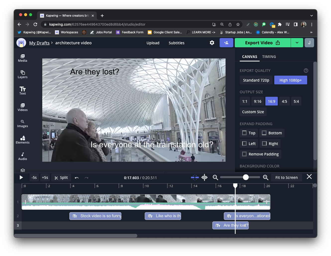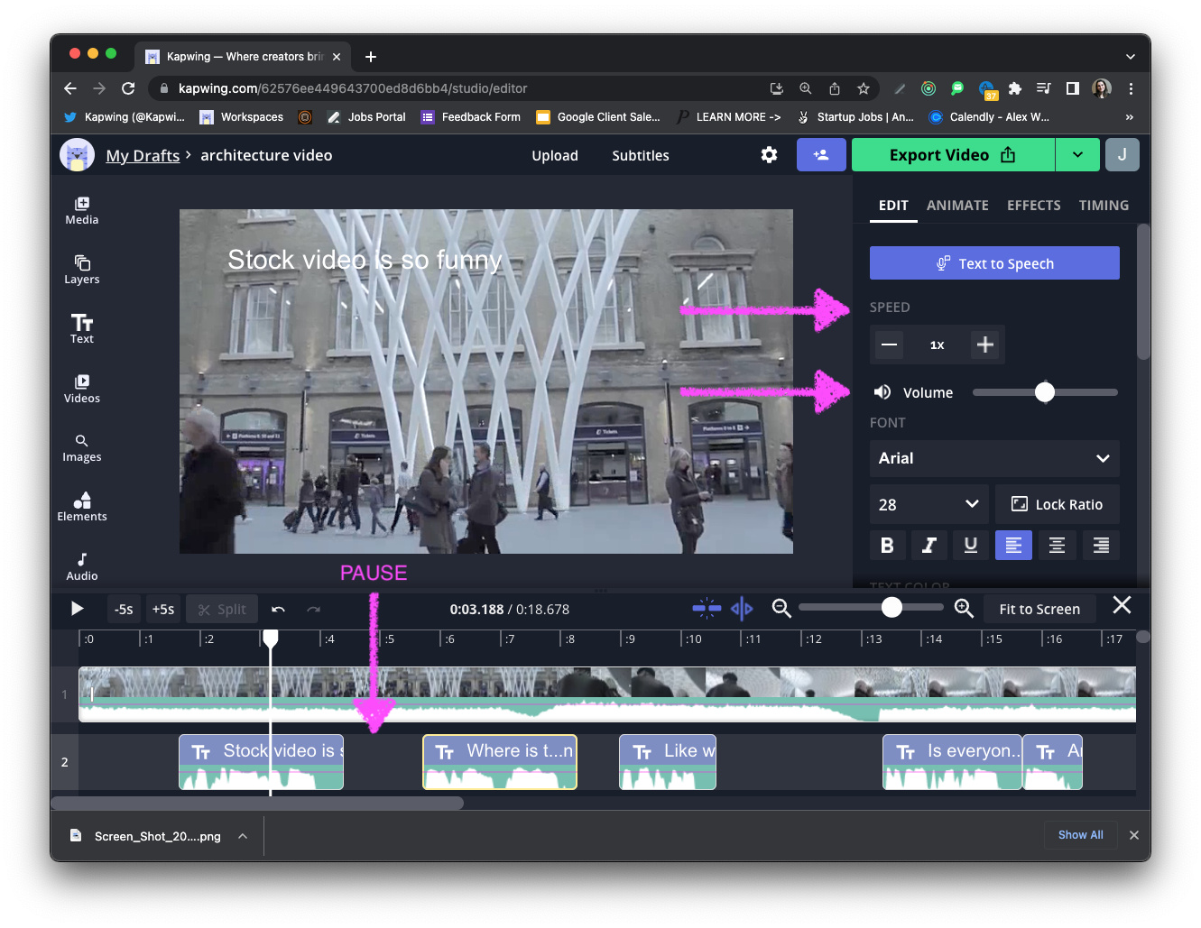 There are several Siri voice generators you can use, but in this example I opted for Kapwing. This website is free to use, lets you download the file as an MP3 or as an audio overlay on a video, and has a full editing timeline for simple customization. Let's jump into the tutorial.