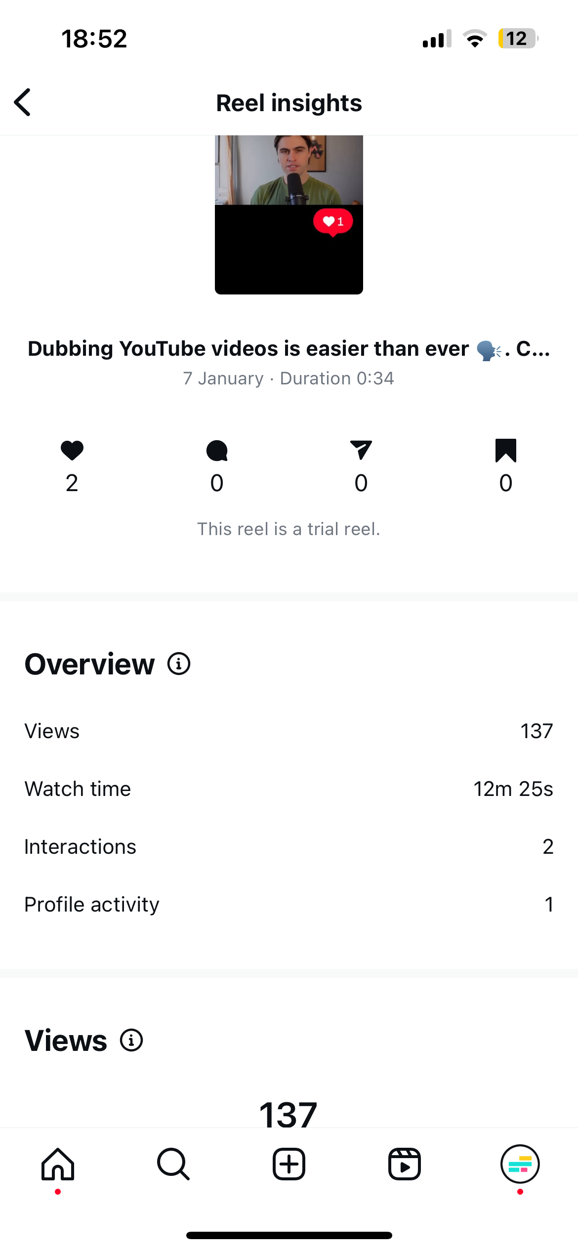 Approximately 24 hours after your Trial Reel is published, you'll gain access to engagement analytics: