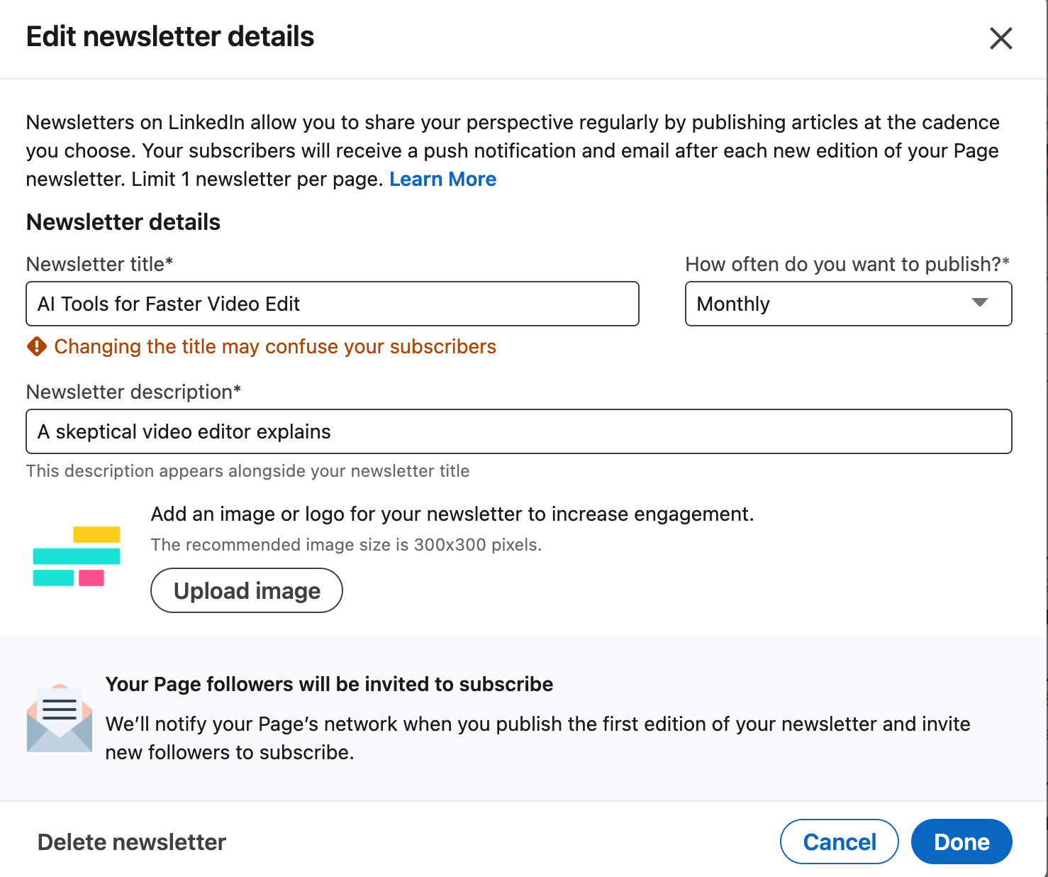 When launching your first edition, LinkedIn invites many of your followers and first-degree connections to subscribe. This is a built-in boost and explains why new LinkedIn newsletters tend to see a subscriber surge in the first week.