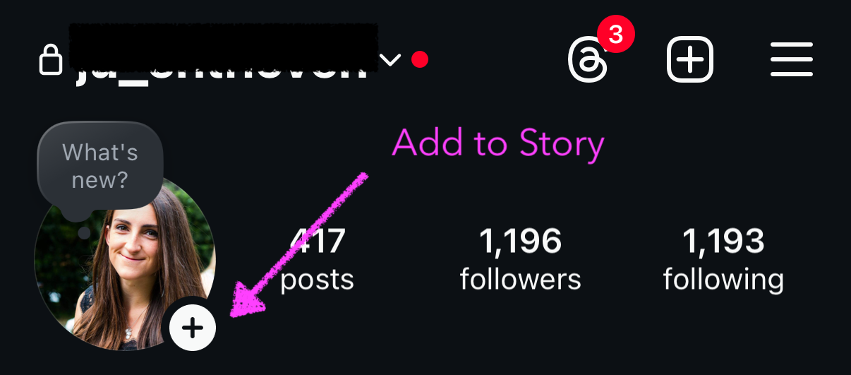 - Begin by opening Instagram Stories. In the app, click the "+" icon on your profile photo.