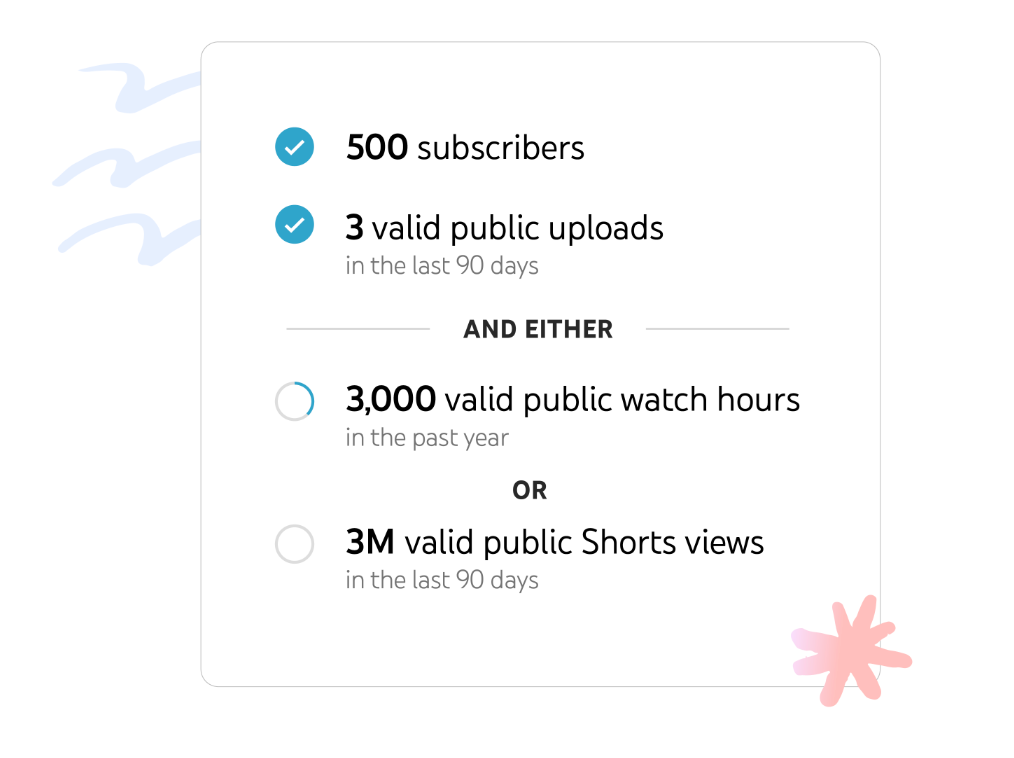The first step to monetize Shorts through YouTube’s Partner Program is to qualify for the Partner Program. Updated in June 2023, eligible channels must meet three relevant criteria for ad sharing: