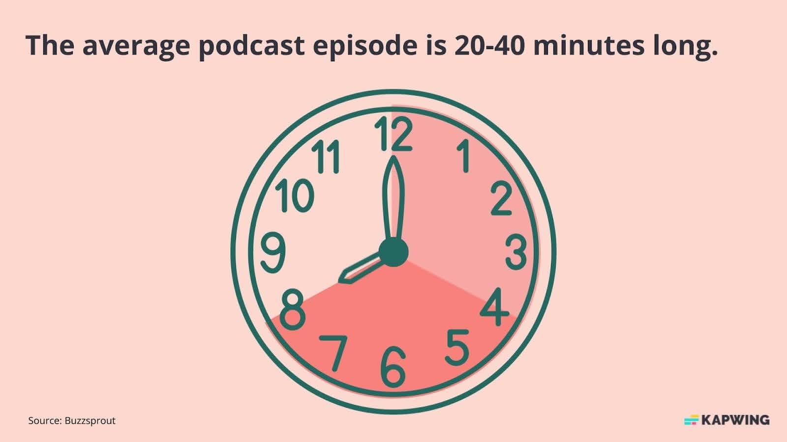 While the exact sweet spot will depend on your specific audience, the most common podcast episode length is between 20 and 40 minutes–and has been since 2021. Only 16% of podcasts publish episodes over an hour in length.
