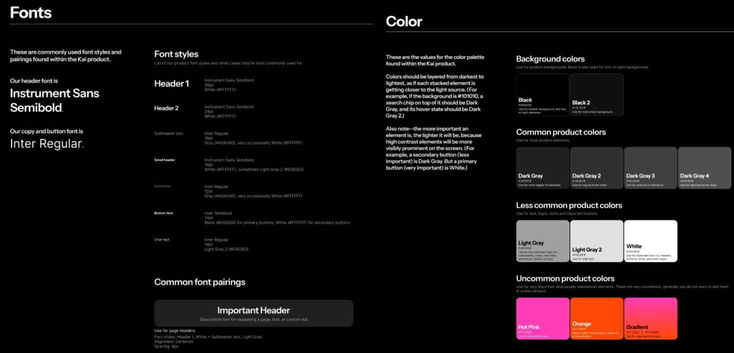 Start by documenting your visual system in a single reference document. At Kapwing, we use a Figma file that represents our brands visual identity. This isn't a massive brand book—it's a practical guide your team can reference while editing.