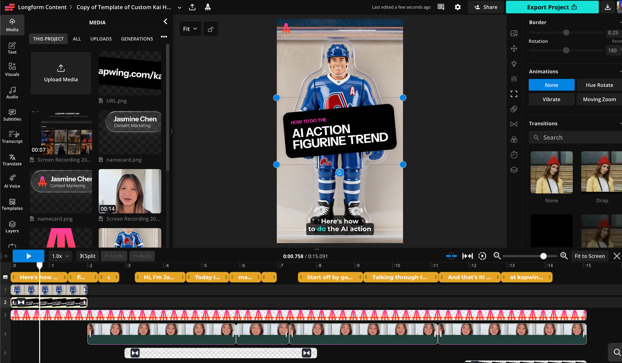 - Start a project with the reusable brand template within Kapwing