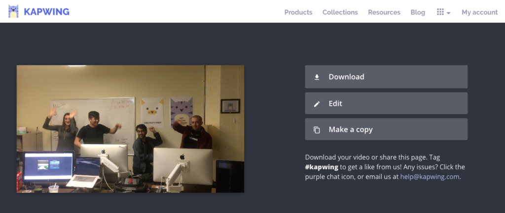 Your video will load and be ready to download! If you want to make any edits to your original video, click Edit. If you want to create a different version of your video, click Make a copy. Log in to have all your videos saved to your account.