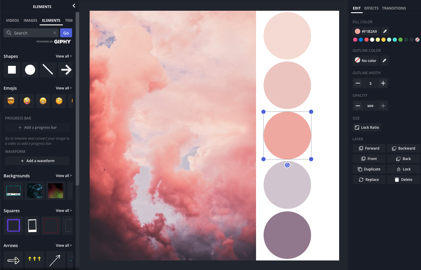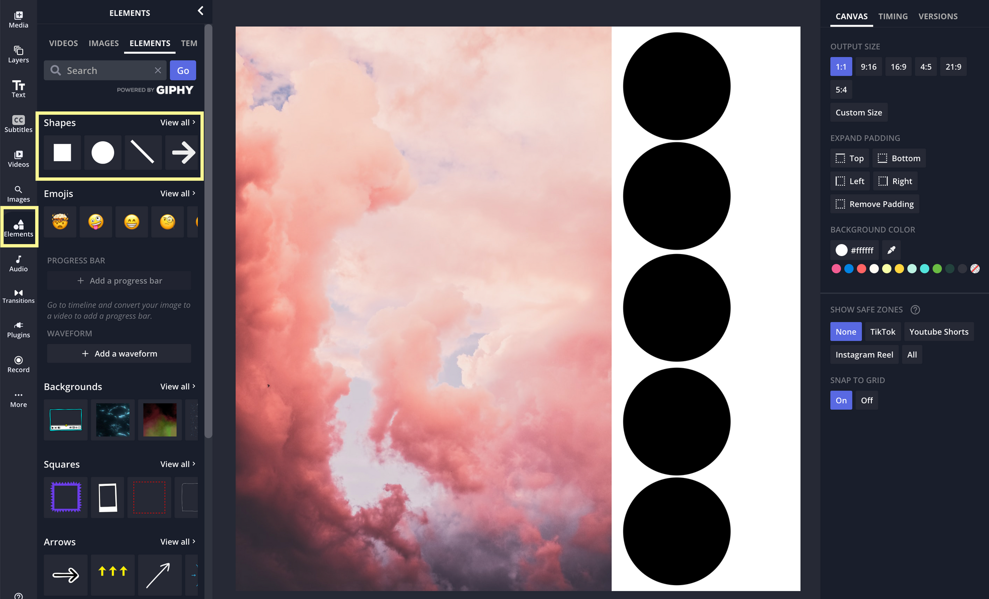 Open the "Elements" tab and add some shapes to the canvas. Don't worry about arranging them in any aesthetic way. We'll do that later.
