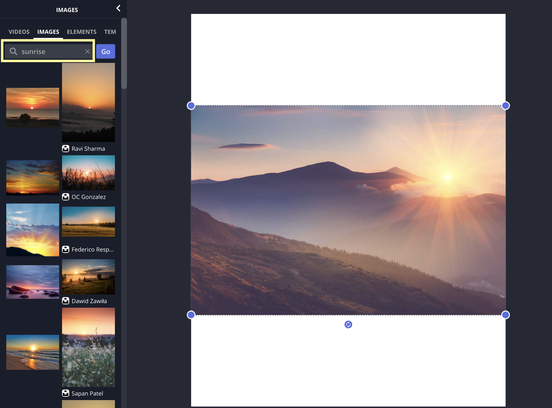 For this example, I'll be using the image library inside Kapwing, an online video and image editor. I'll also be using Kapwing to create the actual palette, so I can keep everything organized and in one place.