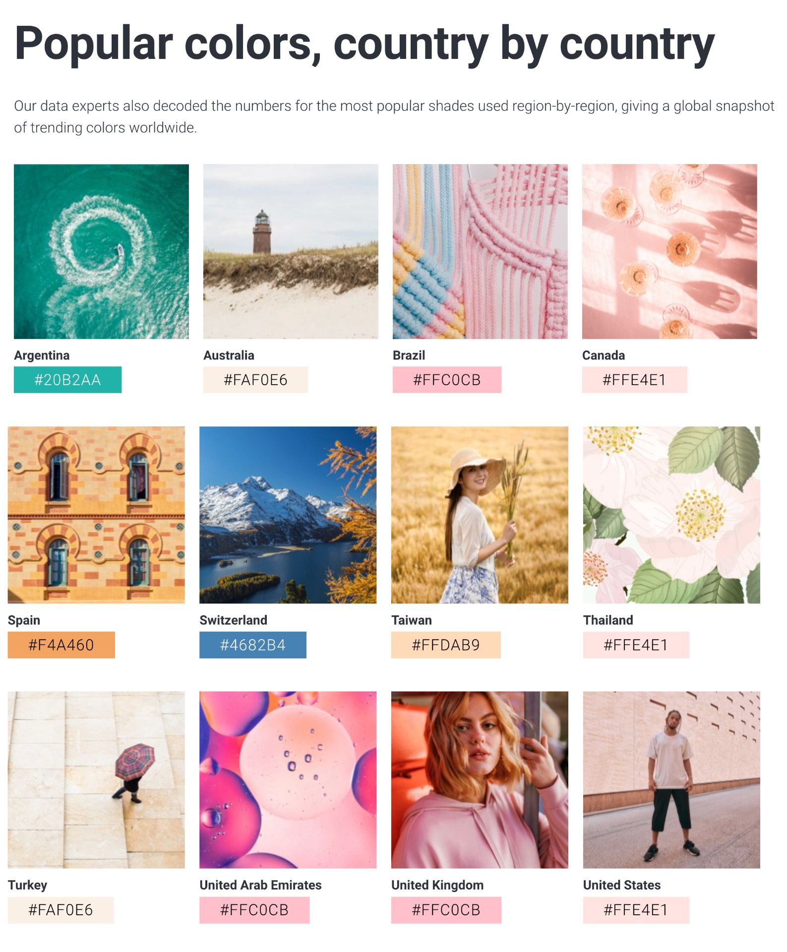 Unlike the previous examples, this color palette uses a collage. A photo collage is a good way to both capture a specific aesthetic and make sure you've included all of the accent colors you want in your palette.