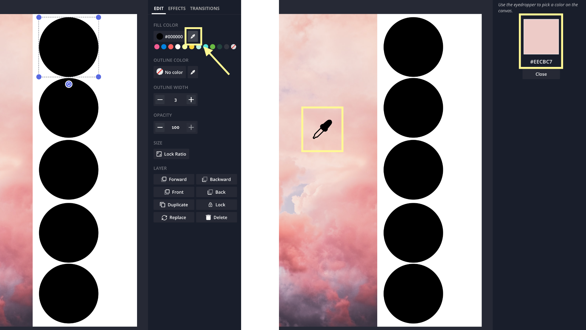 Repeat the eyedropper step for each shape. Be intentional with the colors you choose so that your color palette accurately reflects the color story within the image. Select the most prevalent colors as well as the colors that stand out the most due to contrast.