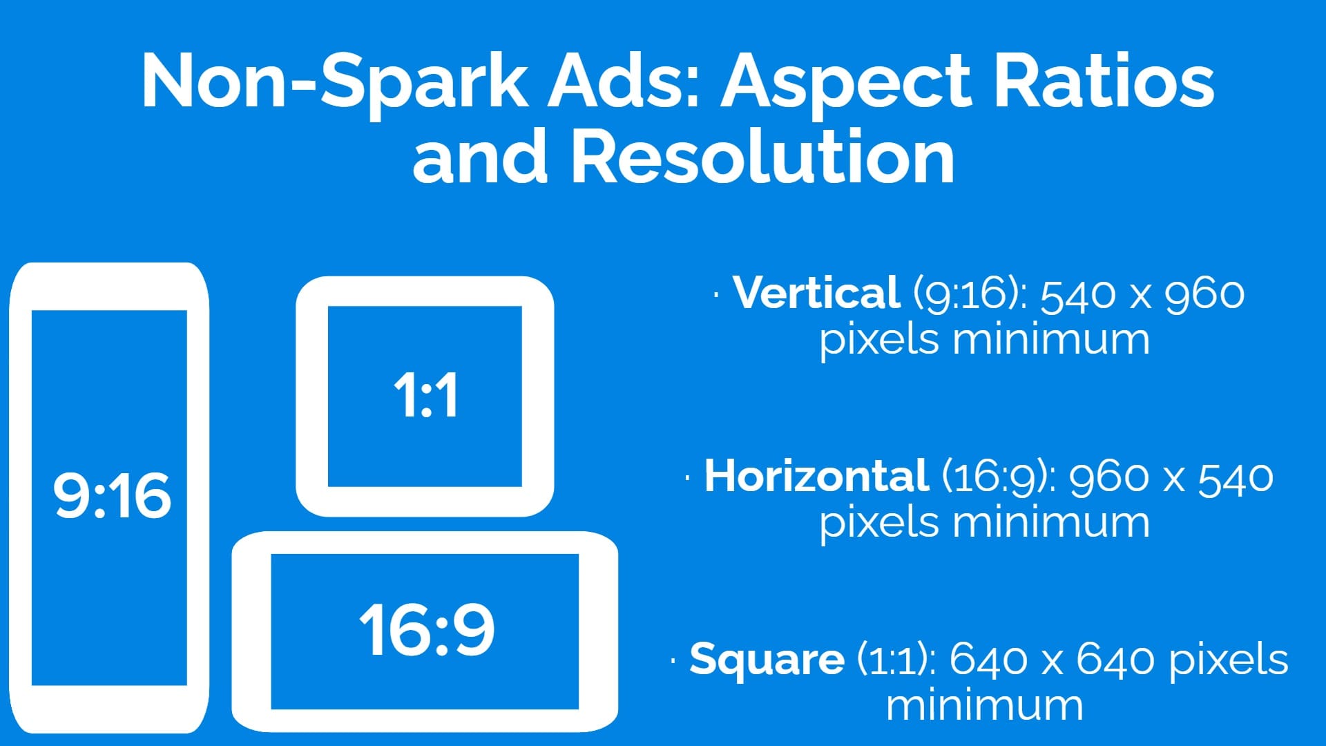 As ever, Vertical video formatting is encouraged (9:16 aspect ratio), but advertisers may upload Non-spark Ads in Landscape/Horizontal (16:9) or Square (1:1).