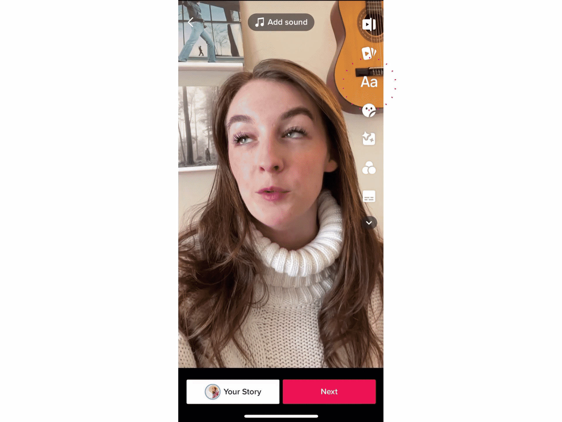 Film and upload your TikTok as usual, then click on the "Add text" tool in the right side menu of the editor.