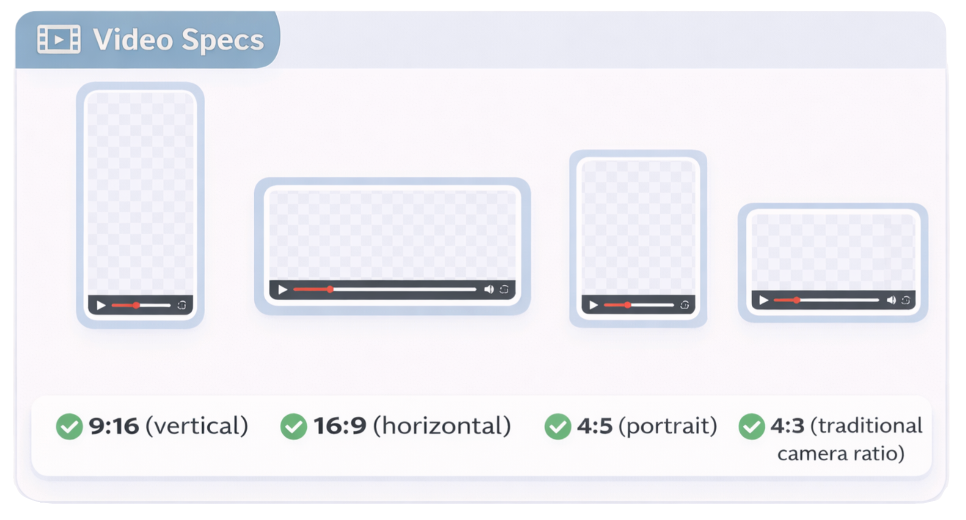 - Vertical videos (6 seconds to 10 minutes)