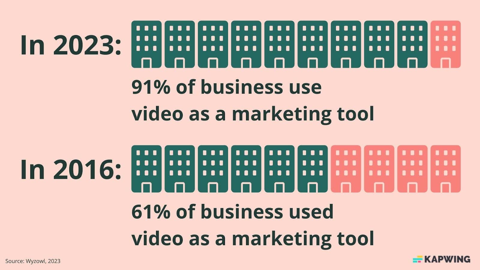 Video marketing is at an all-time high, with 91% of businesses using video as a marketing tool in 2023, according to an annual report from Wyzowl.